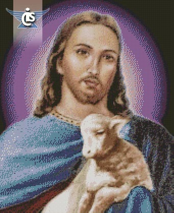 jesus a good shepherd holding a lamb. 170w X 209h St. 14 Count, 12-1/8w X 14-7/8h in code a2387