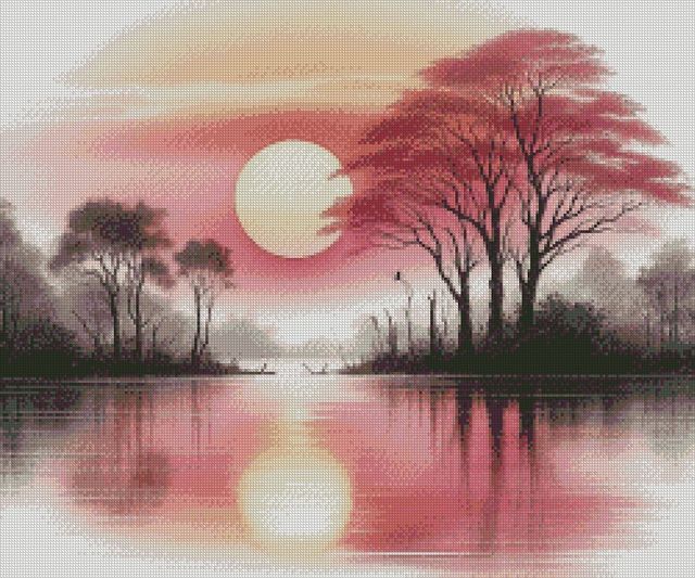 35 colours. 250w X 208h Stitches. 14 Count, 45.36w X 37.74h cm. 18 Count, 35.28w X 29.35h cm