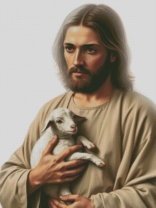 This poignant design beautifully depicts the tender and compassionate image of Jesus embracing a lost lamb, symbolizing care, guidance, and unconditional love. Whether you're looking for a project to reflect on your faith, create a cherished gift, or add a touch of spiritual serenity to your home, this Jesus cross stitch pattern is a truly special choice.